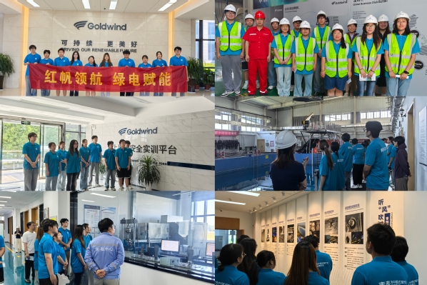 金风科技大丰基地是集研发、制造、培训于一体的海上风电“智慧中枢”。在大丰风电厂,实践团成员实地参观风力发电基地,进入到塔筒内部了解风力发电原理,了解风力发电机组的制造、测试和维护流程,使海上风电行业有了更加直观和深入的认识;在研发实验中心,一个个实验、研发场景、一台台风电机组模型,从图纸到“国之重器”激发着实践团成员的学习热情;在全国首家海上风电培训中心,实践团成员参观模拟海上有可能出现的各种场景,感受海上作业的高风险性;在总装车间,智能化生产线的“钢铁洪流”成为最生动的课堂。同学们深入生产车间,实地参观了风力发电机的生产流程,从塔筒焊接到机舱装配,从叶轮吊装到整机测试,了解到从零部件加工到整机装配的每一个环节,全流程自动化作业让实践团成员直观感受到“中国智造”的效率与精度。