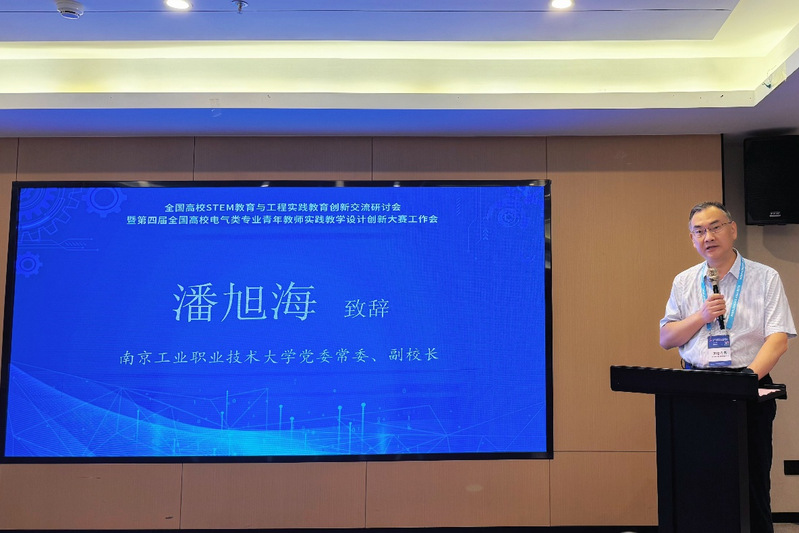 为深入贯彻《教育强国建设规划纲要(2024–2035年)》,落实中央关于教育、科技、人才一体发展的战略部署,推动高等教育与职业教育跨学科融合和专业结构优化,探索STEM教育新模式,强化工程实践与创新能力培养,9月18日,全国高校STEM教育与跨学科人才培养改革创新研讨会在杭州召开。本次会议由教育部电气工程及其自动化专业虚拟教研室、中国电工技术学会电气工程教育专业委员会联合主办,南京师范大学电气与自动化工程学院、南京工程学院天印湖科创学院、南京工业职业技术大学电气工程学院共同承办。教育部电气类教学指导委员会主任胡敏强、浙江大学求是特聘教授陆国栋、中国电工技术学会电气工程专委会郁汉琪秘书长等嘉宾出席。我校党委常委、副校长潘旭海应邀出席并作专题报告。