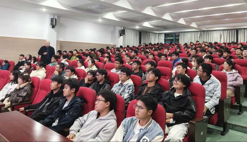 讲座伊始,周建政老师以幽默风趣的语言和紧贴“Z世代”热点话题,迅速点燃了全场气氛。他从职业规划的本质切入,指出大学四年是历练职场技能的黄金时期。周老师巧妙地将简历比作“个人说明书”,提醒同学们大学四年的每一份经历都是填充这份说明书的重要素材。同时,他鼓励同学们保持开放心态,无论是专注学业还是尝试创业,都是在锻造发现需求、解决问题、实现价值的综合能力,这些都是未来职业发展的基石。面对快速变化的就业市场,周老师建议同学们要“眼观六路,耳听八方”。在能力培养上,必须“软硬兼施”:硬技能如编程、数据分析是进入行业的敲门砖;而软技能中,他尤为推崇沟通与共情能力。在市场洞察上,他通过对招聘数据的分析,指出与数字、计算机、AI相关的岗位需求持续旺盛,并提醒大家要关注如储能等新兴行业的政策与全球趋势,让技能储备与市场方向同频共振。最后,周老师为同学们描绘了一幅清晰的大学四年进阶路线图。他从探索适应期的基础学习,讲到实践成长期的专业深化,再到选择提升期的科研竞赛,最后到决策呈现期的求职冲刺。这一分阶段策略为新生们提供了切实可行的行动指南,让大家明白每一个阶段都有其核心任务,唯有步步为营,才能最终在毕业时自信地呈现自己。