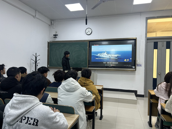 纪录片《逐梦》共8集,本次活动集体观看《用青春和热血守卫祖国》篇章,该片以恢宏叙事与震撼画面,全景式呈现我国国防和军队建设的辉煌成就,以及青年大学生积极参与国防建设事迹,刻画了新时代青年在强军征程中的热血担当与不懈奋斗。同学们被纪录片中感人至深的故事牢牢吸引,也对国防重要性有了全新认知。在场学生们围绕“个人与国防”主题进行交流发言,如何成为有理想、有本领、有担当的新时代青年。