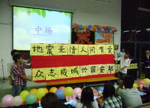 汶川地震已过三年,如今震区的灾后恢复重建工作让汶川上演着“沧海桑田”的巨变。活动的开场是一段感人视频,让同学们真真切切地感受到了地震灾区翻天覆地的变化。更感受到了在中国共产党的领导下,全国人民紧密的团结在一起,中华民族坚定的凝聚在一起的强大向心力。