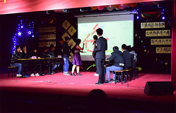 此次党史知识竞赛从初赛到决赛历时一个月,通过笔试、面试组建了新起点队、博乐队、旭日队和龙凤展翅队四支战队,比赛内容涉及党的基本理论知识,党史知识、党的十八大、十八届三中、四中全会、五中、六中全会和习近平总书记系列重要讲话精神等,分必答题、选答题、抢答题、匹配题、关卡题等多种类型。在“星星之火可以燎原”、“中流砥柱,激荡心志”、“烽火记忆,缅怀先烈”和 “重温长征,坚定信念”等比赛环节中,四支代表积极思考、踊跃答题,都有出色表现。最后,“博乐队”力压群雄,摘得桂冠。