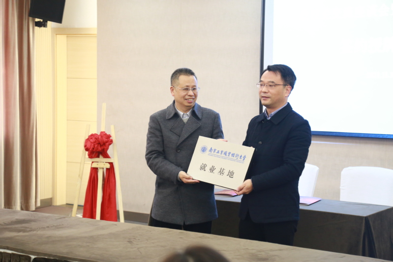 结束考察,学院一行在郭庄镇东恒空港产业园与郭庄镇党委书记谢兵书记为代表的政府企业代表进行交流座谈,谢书记向学院介绍郭庄基本情况,杨院长也就办学历程专业设置等方面对学院进行介绍。王静书记代表学院与郭庄镇签订就业基地框架协议,吴国中院长进行“南京工业职业技术大学就业”基地授牌,教师代表与企业代表进行交流的发言。会后,政校企三方都表示此次交流是深化合作、共同发展的良好契机,也是三方增进了解,打造典范的重要渠道,希望通过政校企合作搭建学生就业平台与技术合作的窗口,促成技术成果转化的新方向。