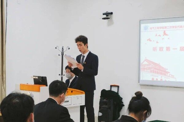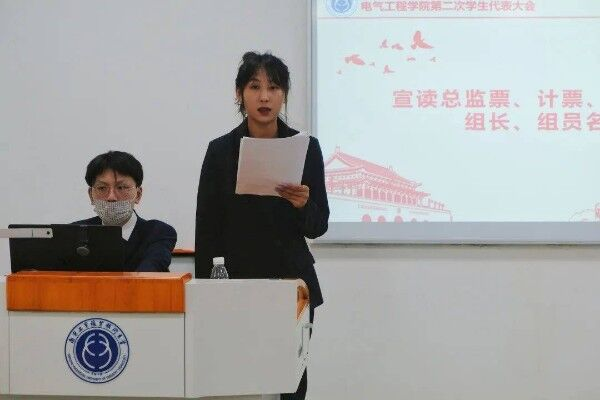 电气工程学院团总支书记徐梓涵老师公布《第二届学生会主席团成员选举结果》,经全体学生代表的选举投票,陆熠晨、姜明滟、蒙清心三位同学成为学生会主席团成员。经大会审议,与代表一致表决同意《南京工业职业技术大学电气工程学院代表团建议名单》,并由徐梓涵老师宣读《南京工业职业技术大学电气工程学院代表团建议名单》。电气工程学院学生会主席张晨曦同学宣读大会倡议书。最后,由团总支副书记张心怡同学宣读南京工业职业技术大学电气工程学院第二次学生代表大会闭幕词。本次大会顺利落下帷幕。